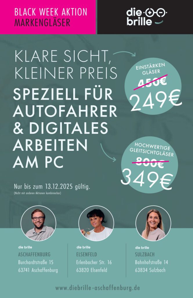An unserem zentral gelegenen Standort in Aschaffenburg, mit Parkplätzen direkt vor der Tür, findest Du eine breite Palette an Brillen und Kontaktlinsen. Schau vorbei und lass Dich professionell beraten.